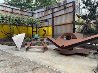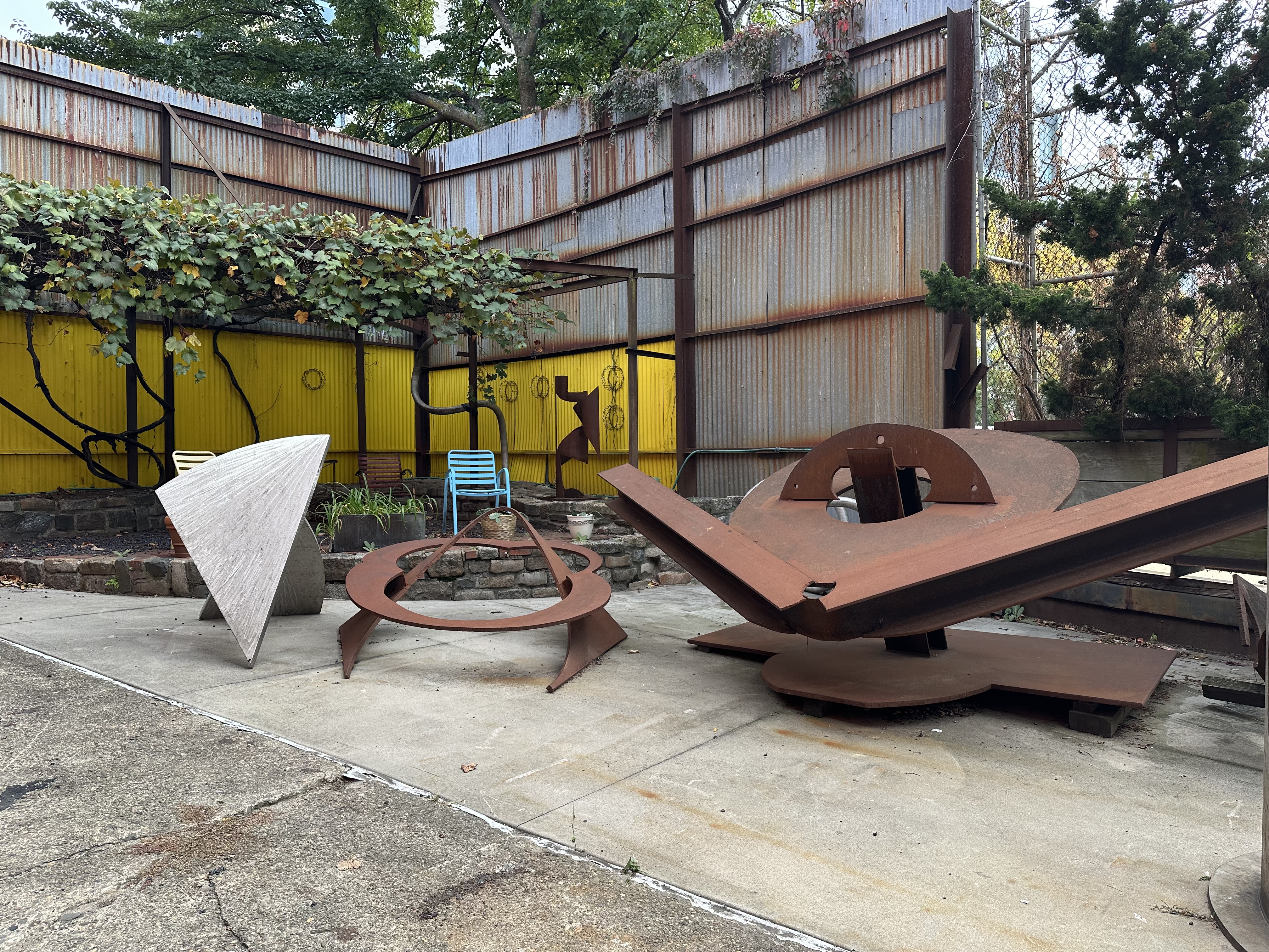 My final location on day one was back in Astoria at Spacetime, sculpture artist Mark Di Suvero’s studio in the yellow aluminum warehouse on the waterfront. Founder of Socrates Sculpture Park in 1986, Di Suvero is a master of interactive steel sculpture on a massive scale, and his work has been exhibited worldwide. Some of the pieces displayed in and around the warehouse were so enormous they truly defied imagination.